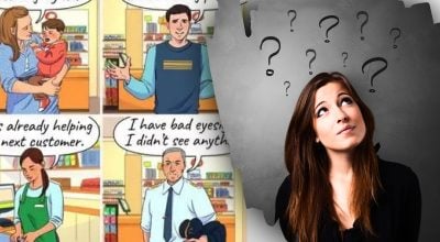 Mindössze annyit kell tenned, hogy megnézed az alábbi képet, és beazonosítod, hogy a boltban lévő emberek közül melyik lopta el valakinek a pénztárcáját. A képen látható emberek közül hárman igazat mondanak, de egyikük hazudik.