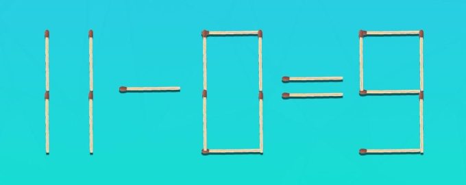 Mint látható, ahhoz, hogy az egyenlőség helyes legyen, a 9-es számról a 0-ra kell áthelyezni a gyufát. Ennek eredményeképpen a 9-ből 3 lesz, a nullából – 8. Megkapjuk a helyes matematikai példát: 11 – 8 = 3.